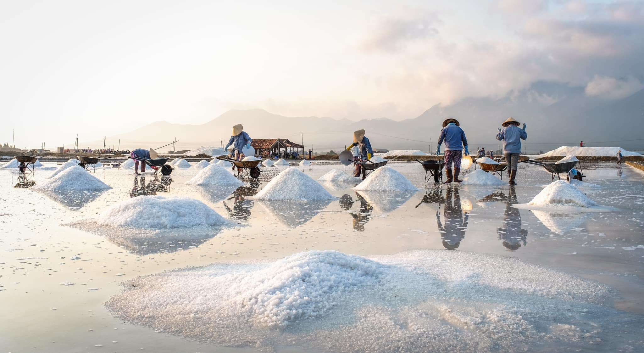 Mỗi hạt muối thành phẩm đều được thu hoạch hoàn toàn thủ công bởi đôi bàn tay cần mẫn của người gìn giữ nghề muối truyền thống